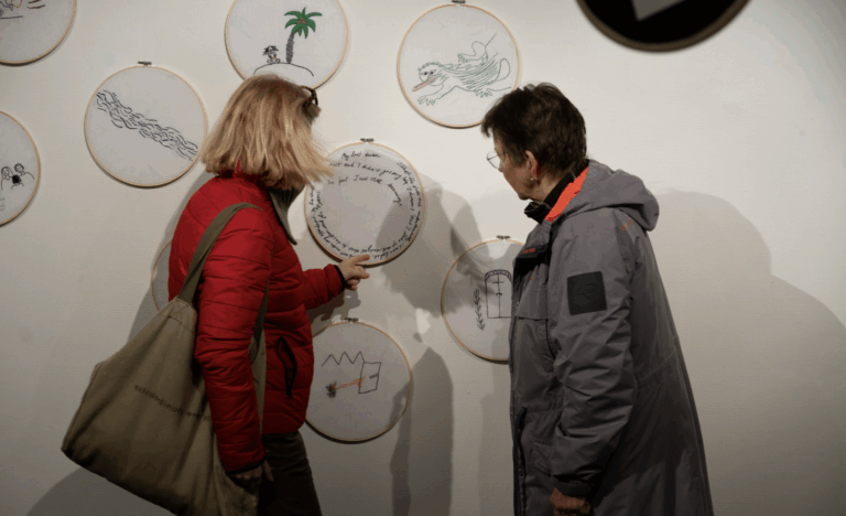Konstnären Lena Ylipää närvarar och berättar om verket Språket, skammen, skrattet (2024)