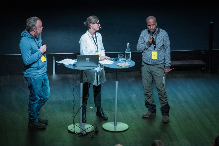 Bland andra fick åhörarna lyssna på Oslobiennalens curatorer Eva González-Sancho Bodero och Per Gunnar Eeg-Tverbakk berätta om hur de har tänjt på formatet med biennalen och tagit sig an konstproduktion bortom etablerade definitioner av temporärt och permanens, genom aktiveringar, deltagande och störningar i det offentliga rummet.