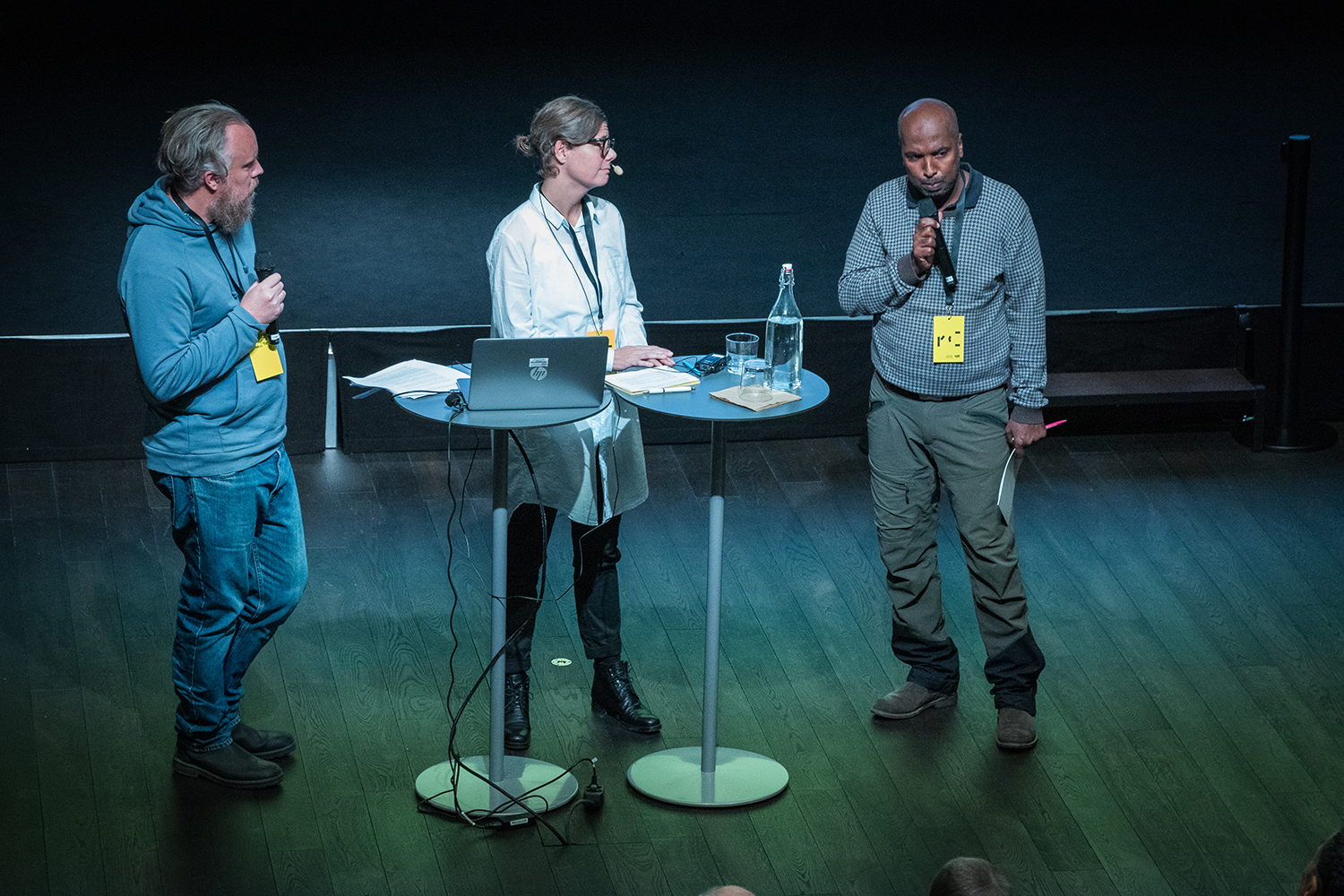 Anna Högberg och Johan Tirén, konstnärer och Jamal Abdulle, boende och medverkande