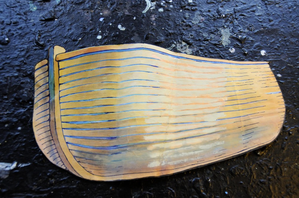 Det intressanta och förvånande är att vissa idéer tycks dra till sig material som blir viktigt och ibland avgörande för projektets utveckling. Kort efter besöket på Stora Gråmunkegränd hamnade just ett sådant material på mitt ateljégolv. En flanellograf från en frikyrka i Småland som använts i söndagsskolans undervisning. Bland de nötta och urblekta bilderna fanns Noaks ark som återförde mig till min egen barndom i 1940-talets Örebro och Emanuelkyrkans söndagsskola.