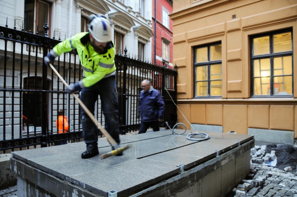 Det som slog mig när jag första gången såg platsen var det tydligt avgränsade rummet. Långsträckt bakom galler av järn liknade det någon sorts vitrin där man visar märkliga och sällsynta föremål. En museal känsla kan man säga. Närheten till Riddarholmskyrkan förstärkte den ”historiska” atmosfären ytterligare. De kungliga sarkofagerna i sina gallerförsedda gravkor har alltid fascinerat mig. Platsen var således inbjudande på något sätt men på samma gång en aning farlig vilket kändes som en utmaning. Jag bestämde mig för att anta den.
