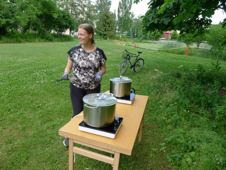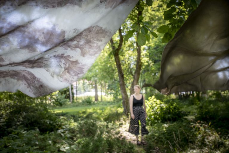 Amanda Selinder undersökte under sommaren svampar, alger, bakterier och växter som hon hittade i parken och använde dem för att färga textilier. Hon använde traditionella växtfärgningsmetoder som kokning och solfärgning. Dessutom har hon extraherat pigment från bakterier och svampar i laboratoriemiljö i det intilliggande Evolutionsbiologiskt centrum, EBC. Textilierna blev sex stora konstverk som placerades på gräs och vatten i Blåsenhusområdet under hösten 2021.