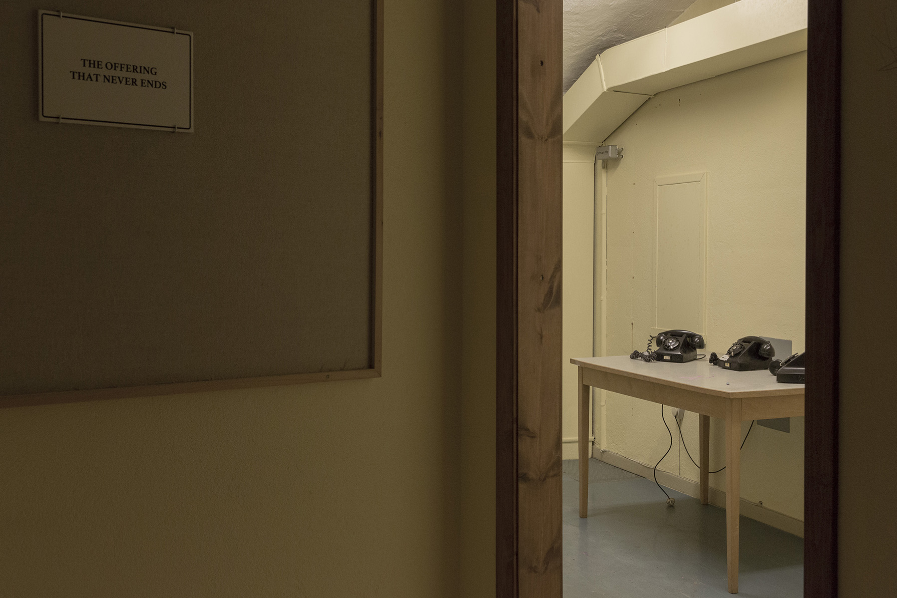 Försvarsanläggningen djupt inne i Mjölkuddsberget stod, precis som utställningens andra visningsplatser, färdig på 1950-talet. Bergrummet är dock motsatsen till de övriga byggnadernas ljusfyllda och framtidsoptimistiska arkitektur. Precis som Posthuset var Mjölkuddsberget en kommunikationscentral, fast med uppgift att verka utom synhåll i krigstid. Anläggningen skulle även skydda malmhamnen i Luleå, dit fästningen Bodens kanoner inte kunde nå. Efter kalla krigets slut bantades det svenska försvaret och berget togs ur Försvarsmaktens organisation. Delar av den gamla kommunikations- och beredskapsutrustningen står dock kvar inne i det nu spöklika berget – en påminnelse om en tid av intensiva förberedelser inför ett krig som lyckligtvis aldrig kom.