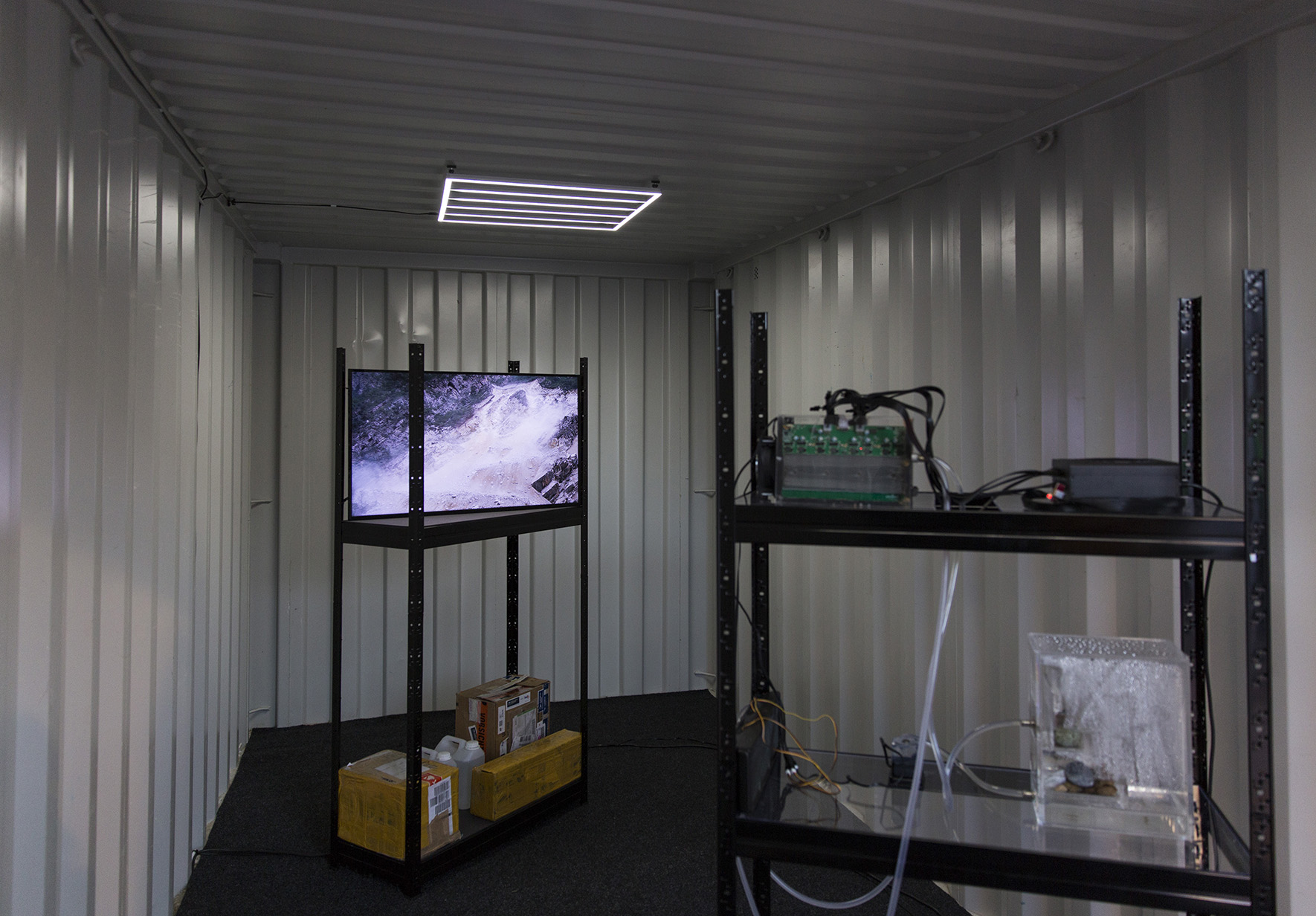 Verket the ideal (2015) av Yuri Pattison är en del av utställningen Brytningstider. Installationen visar hur utvinningen av Bitcoin är en fysisk och energikrävande process, trots att valutan är digital. I bildgalleriet stillbilder ur verket av Yuri Pattison.