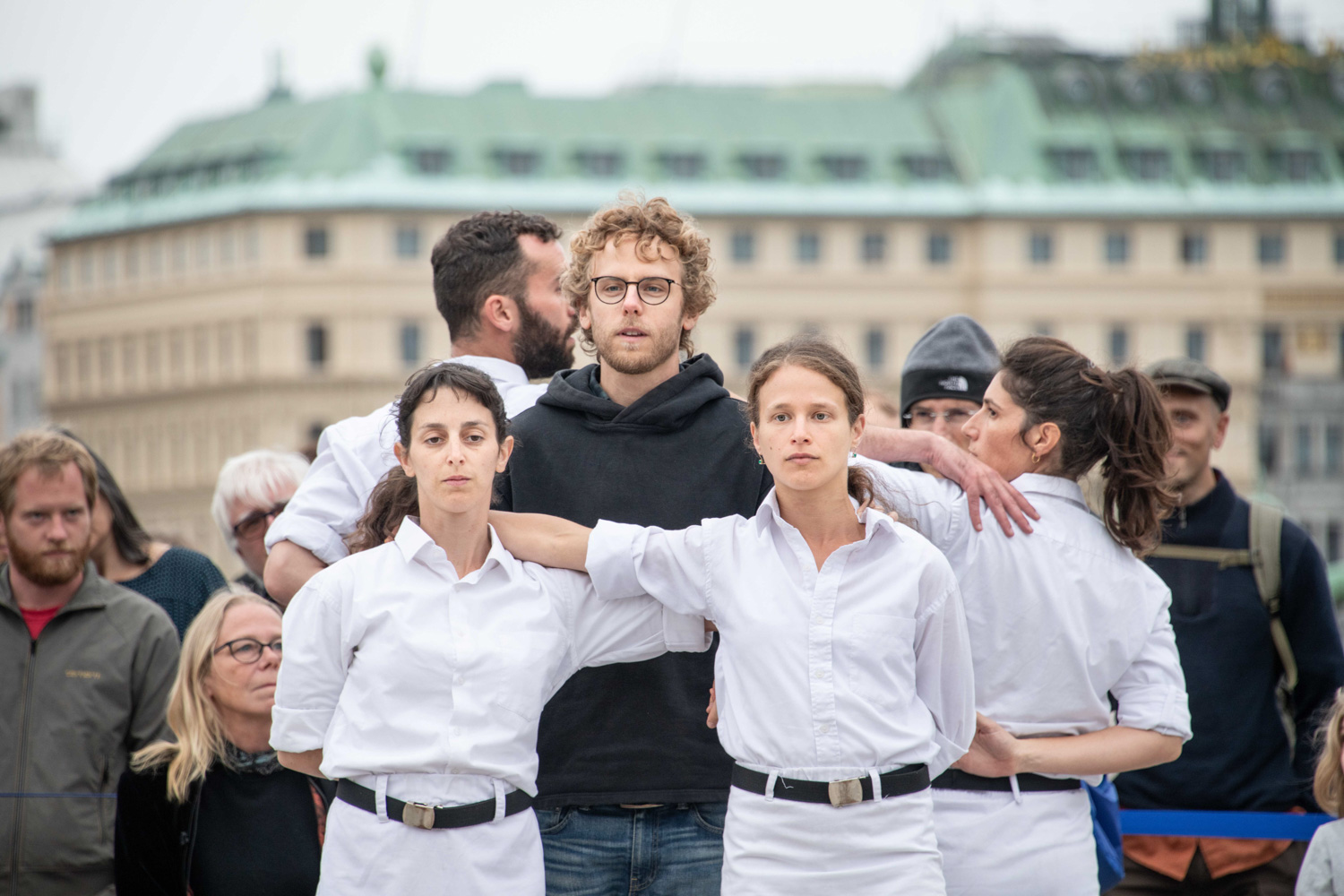 Denna utveckling pågår fortfarande och vi behöver tid på oss för att omorganisera de sociala koordinaterna, men det vore kanske till hjälp att försöka förstå de känslor och kopplingar om ligger till grund för dessa föreningar och former av återsamling – eller, med andra ord, dessa nya sociala koreografier. I algoritmernas tidevarv ser vi en ny ekonomi som drivs av känslor, som också påverkar hur vi väljer att gå samman och vilka vi ansluter oss till. Vi måste inse att frändskap och relationer inte endast växer fram som ett resultat av intressen och önskningar som delas av missnöjda personer. Vi behöver en mer holistisk syn på det sociala och på mänskligheten som ”den förhandling som uppstår ur att vara en levande varelse bland varelser mitt ibland livsformer som är fler än vi”*, som Butler skriver, vilket pekar mot andra typer av sammanslutningar. Som de inbjudna konstnärerna och deras interventioner antyder, uppstår dessa sammanslutningar och de respektive former i vilka kroppar, individer och kollektiv framträder och återsamlas, ur en delad oro över de sätt på vilka vi deltar i världen runtomkring oss och hur vi genom sådana processer kan förvandla och bli förvandlade av den.