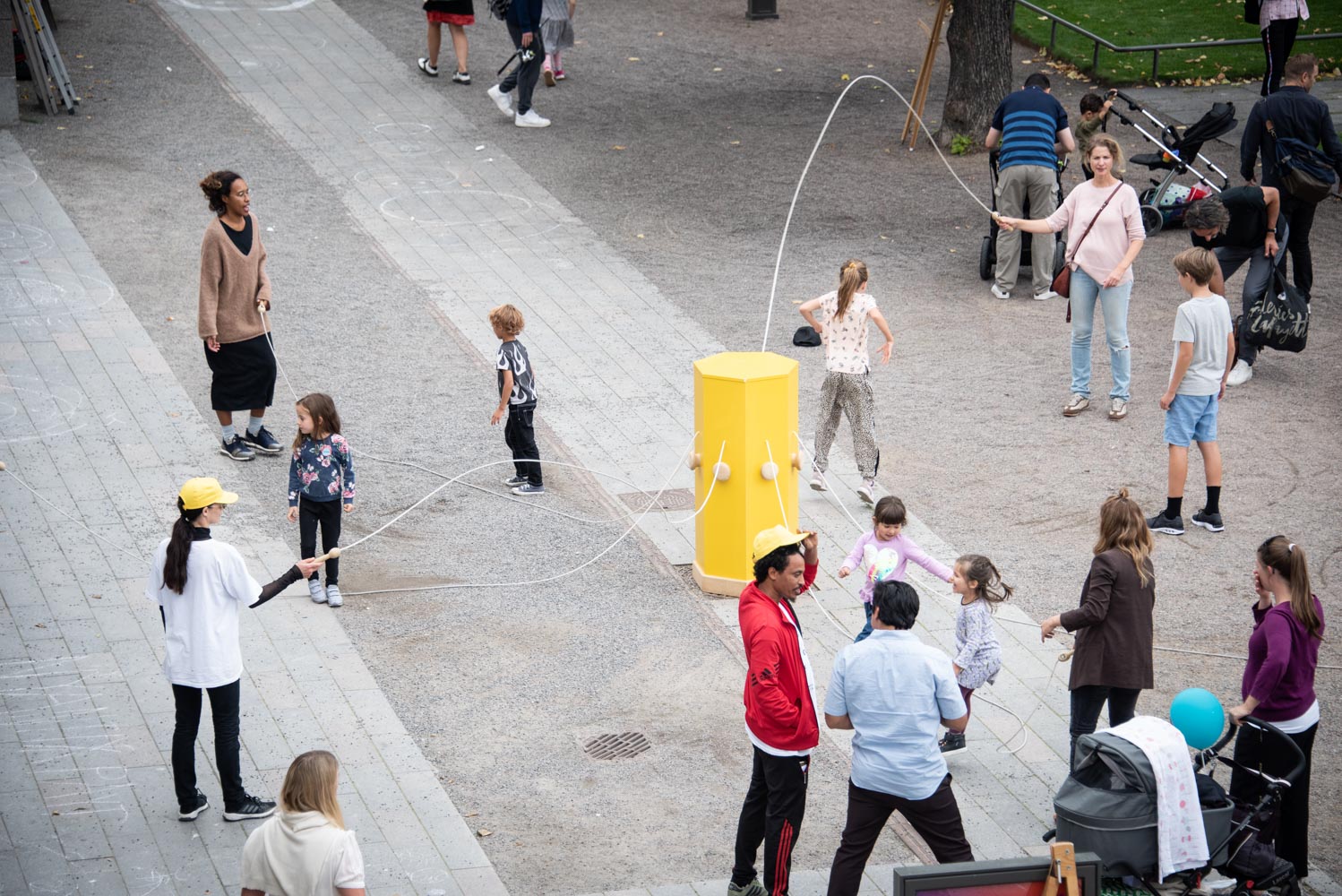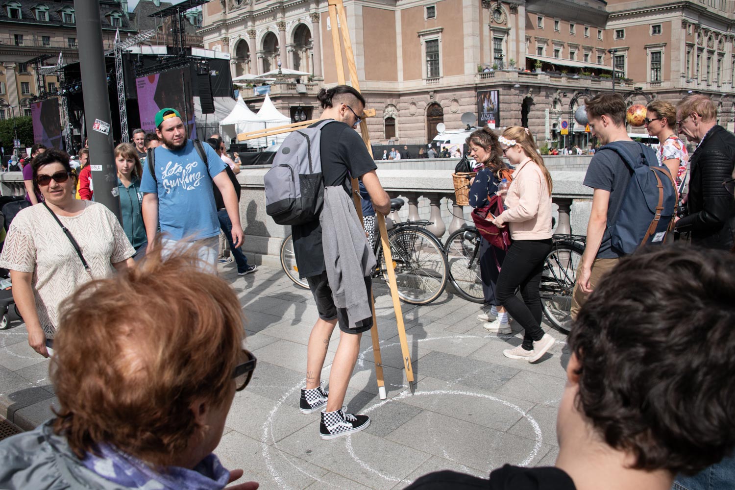 Coordination Models av Molly Haslund är både en installation och performance. Verket består av en serie modifierade objekt som är avsedda att utmana besökarna och skapa en fysisk återspegling av hur vi använder och rör oss i det offentliga rummet.