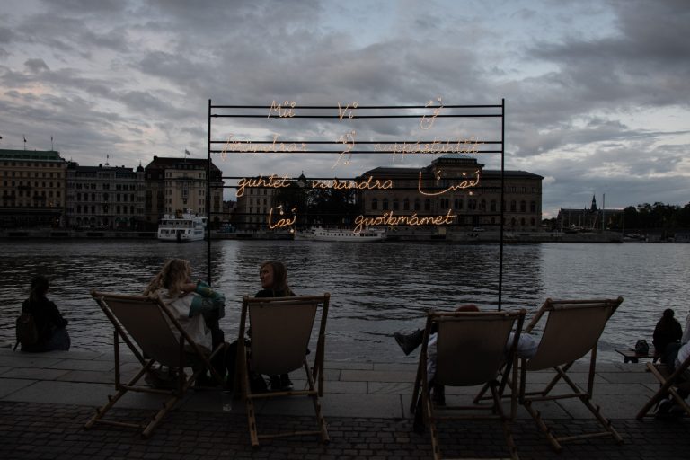 Vi förändrar varandra är en ny monumental ljusinstallation av Shilpa Gupta. Det är ett verk som väcker frågor om sammanhållning och sammanslagning av kulturer, och visar den oundvikliga förvandling och upplösning som sker när två kulturer möts.