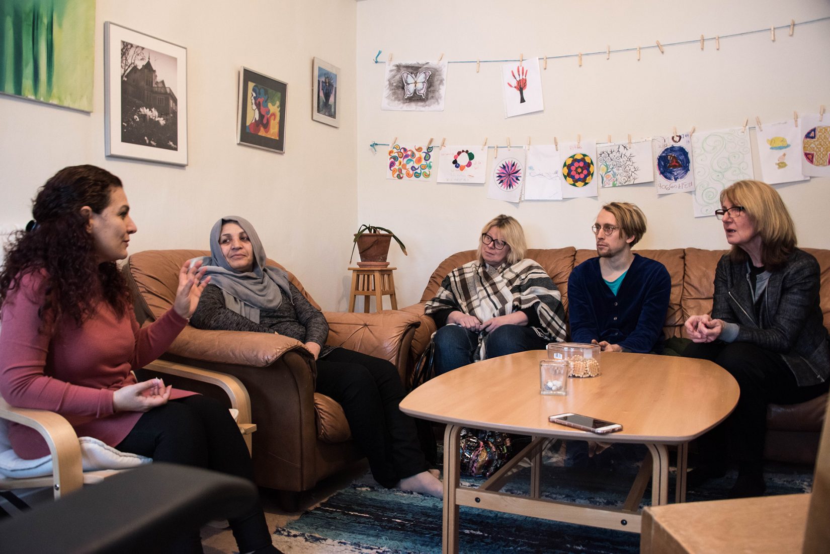 – En liten utmaning var att inte hamna i klyschiga illustrationer av krig och fred med regnbågar och människor som håller varandra i händerna. Jag har även känt en viss press att göra berättelserna rättvisa. Risken då är att mina översättningar av intervjuerna mer blir till illustrationer än konstverk. Det har varit utmanande, men vi har lyckats bra. Det har underlättat med stödet från Statens konstråd som månat om min konstnärliga frihet.