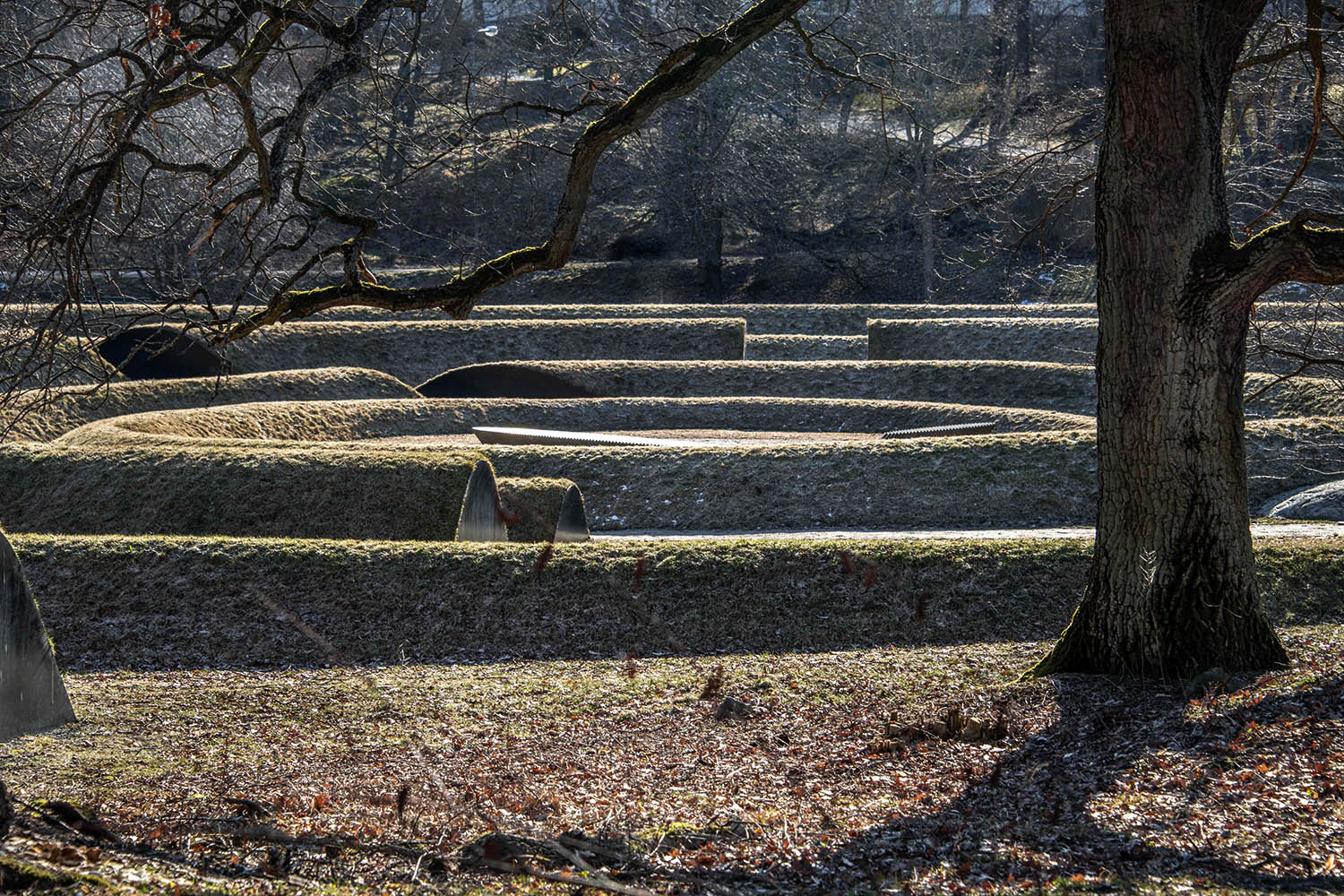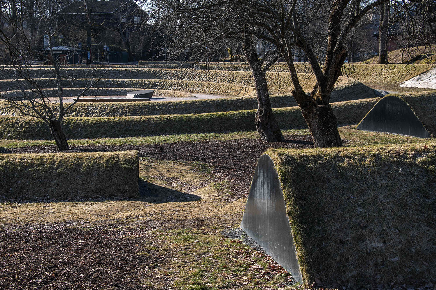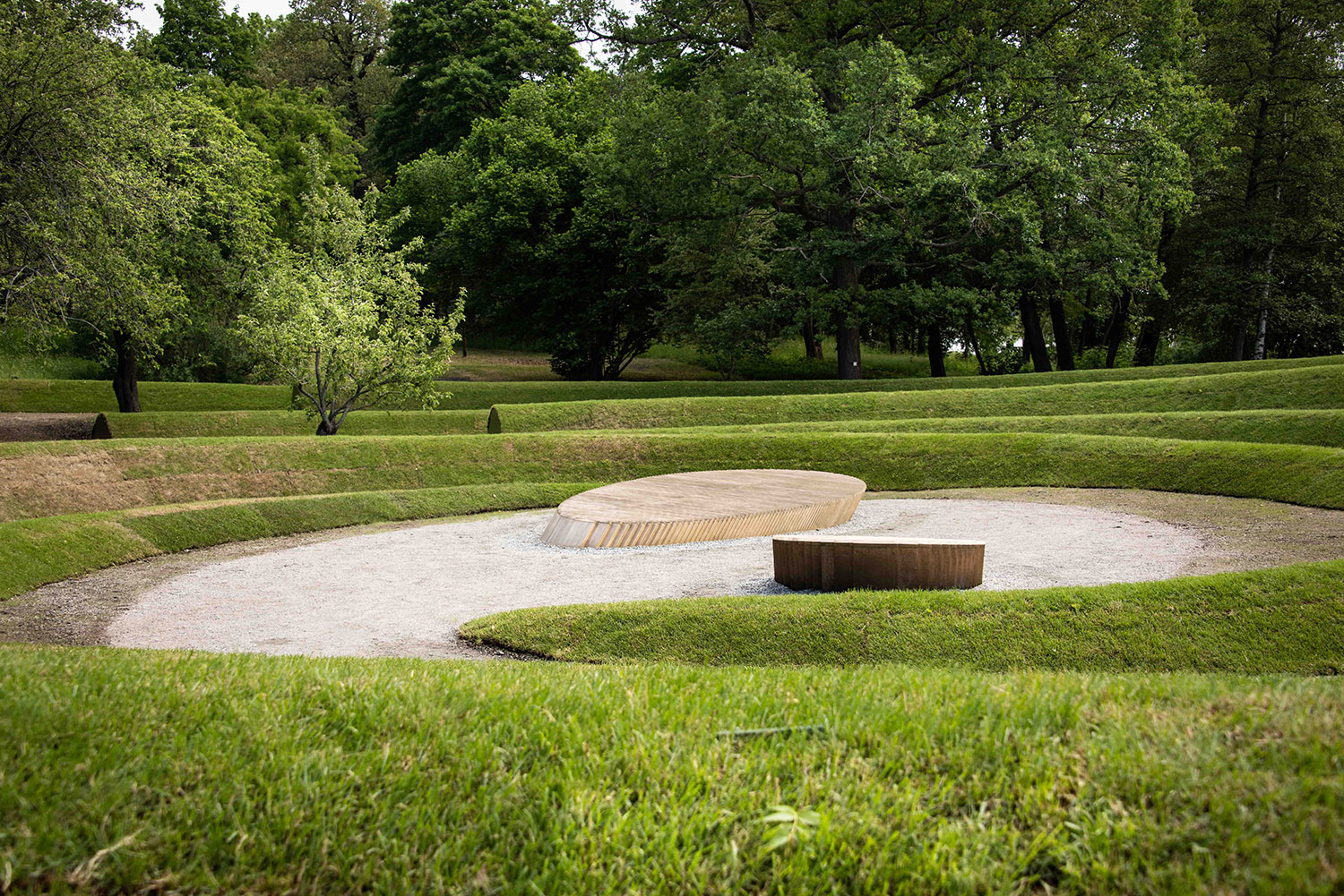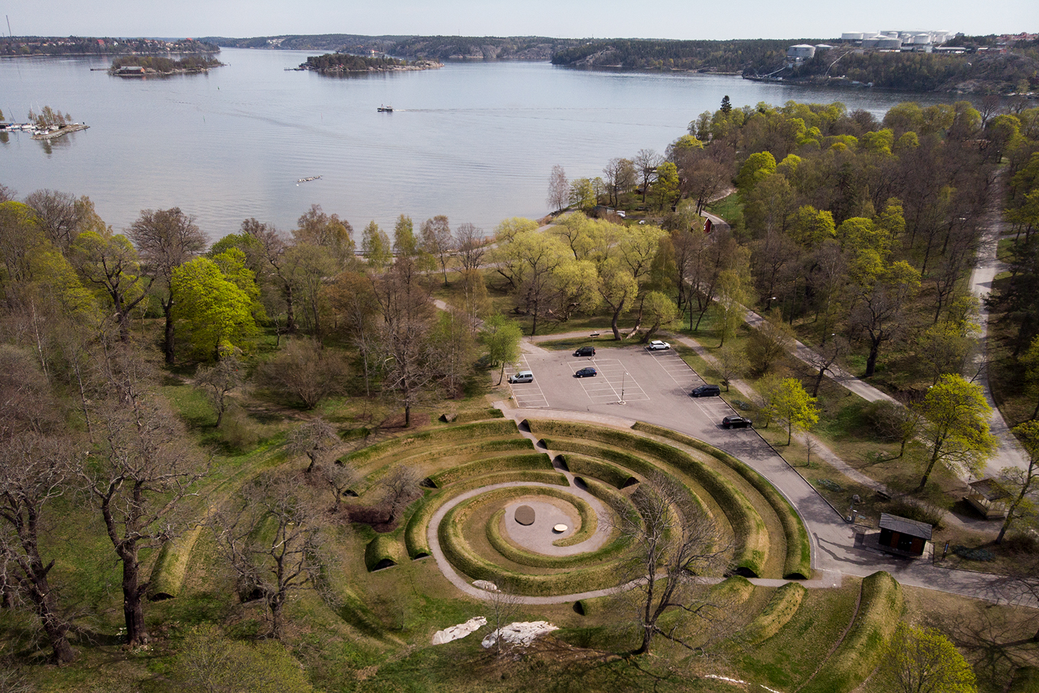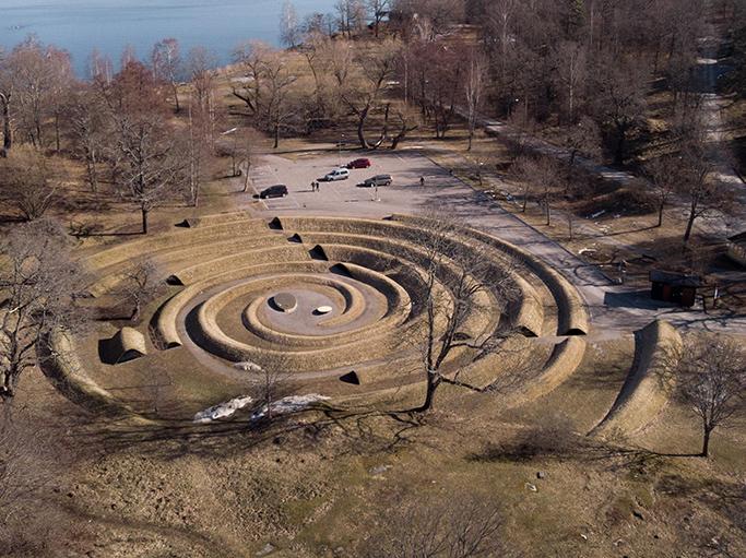 Återigen, för mig handlar allt om att arbeta med. Att använda jord som material i första hand är ett mycket konkret sätt arbeta med jordisk materia. Med det nya läget för dubbelspiralen, som inkluderar parkeringsplatsen, lägger vi till biologisk mångfald. Vi planterar och sår blommor och inte bara gräs. Den här mångfalden är inte bara njutbar för det mänskliga sinnet, den ger näring åt andra varelser också – bin, spindlar, vad du vill. Samtidigt förblir de åldriga träden på platsen orörda, men i nytt friskt sällskap. Jag är övertygad om att minnesvården kommer att växa till sitt eget varande. Att arbeta-med naturen är också att se saker växa och låta naturen uttrycka sig. Det kommer att ta tid, allteftersom nya lager och fröer läggs till varje år, på samma sätt som kristallerna i Robert Smithsons jordkonstverk Spiral Jetty. Jag har fått frågan om Smithsons verk har inspirerat mig, och ja, det har absolut influerat mig. Jag gick längs spiralen i Salt Lake 2006, och det var en djupgående erfarenhet. Jag menar att jordkonst skiljer sig från andra konstupplevelser genom att erbjuda starkt fysiska möten. Den mesta jordkonst jag har sett finns i USA, arbeten av manliga konstnärer på platser långt bort. Så det här förstås annorlunda. Men det jag tog med från upplevelsen av ett konstverk som Walter de Marias Lightning Field var känslan av att vara omgiven av verket. Genomkorsad av dess stämningar, dofter, och så vidare. En genomgripande upplevelse som öppnar och vidgar sättet att uppleva och tänka-med världen. I någon mening påmind om vår mycket påtagliga närvaro på jordklotet.