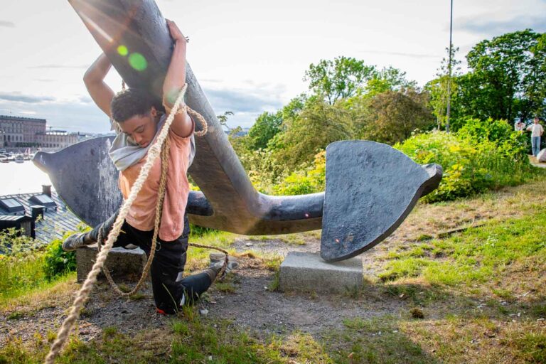 I sDuel möts dansen och Skeppsholmens historia. De olika lagren av det förflutna lockas tillbaka till ön för att leka.