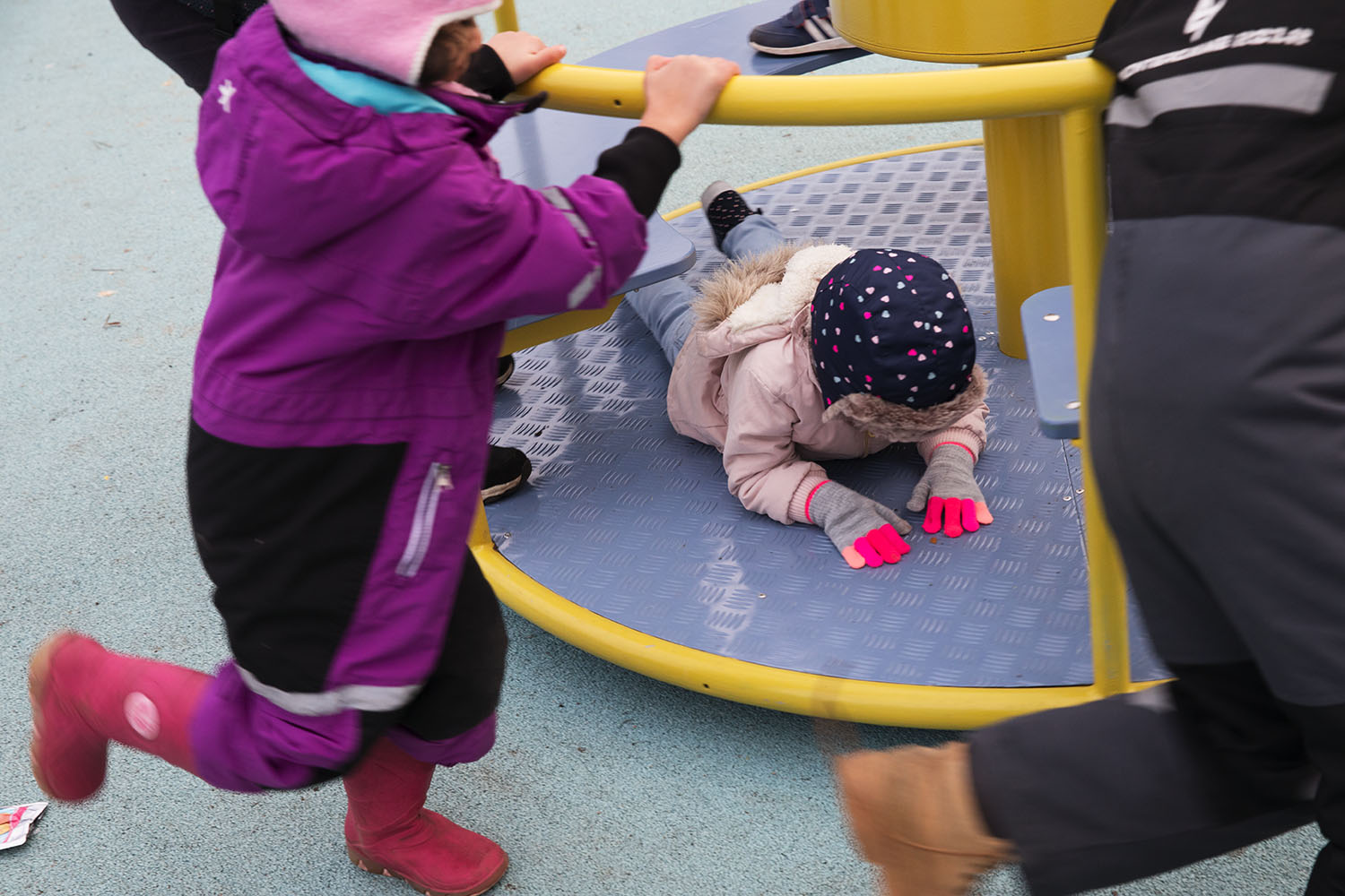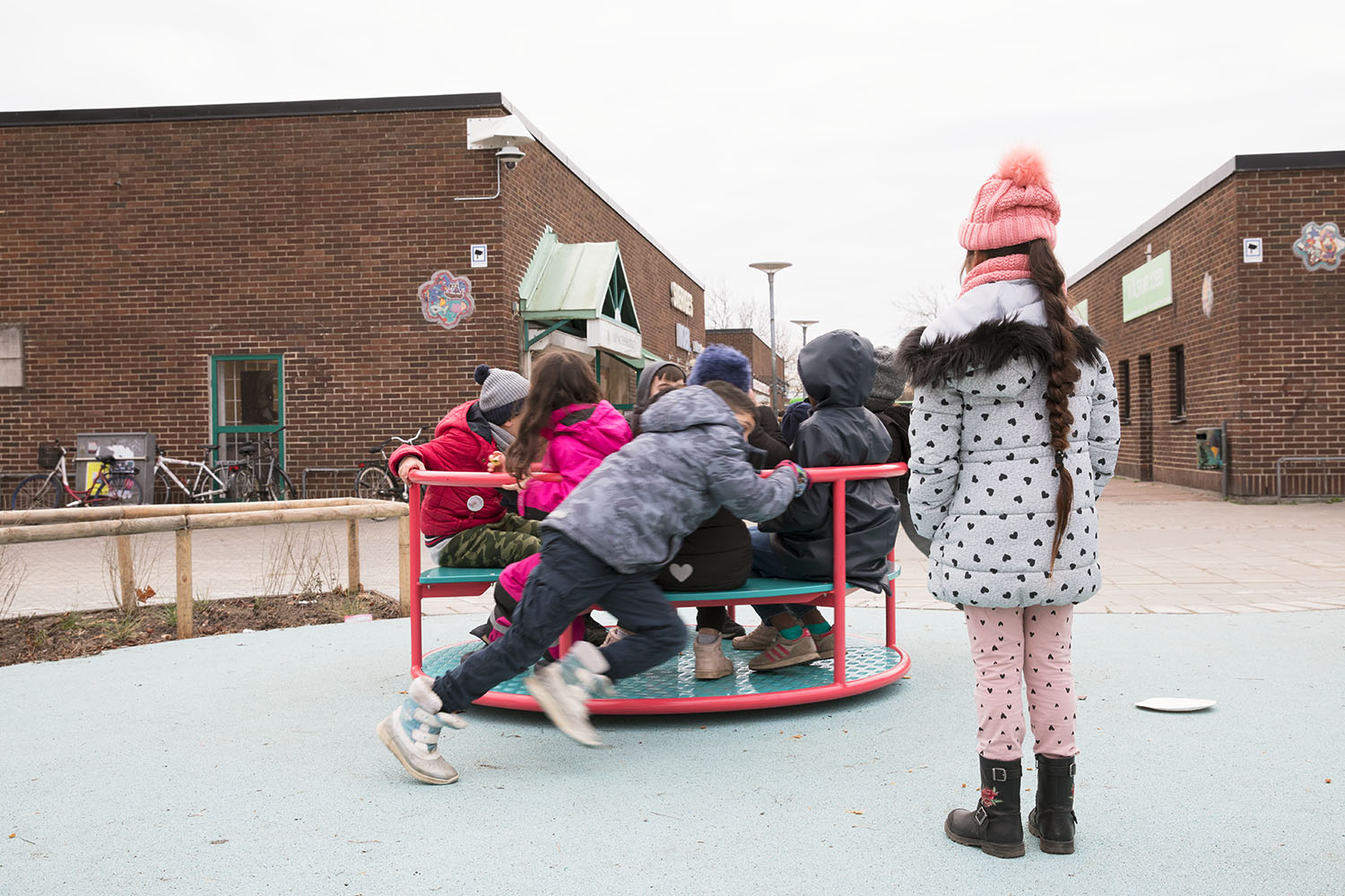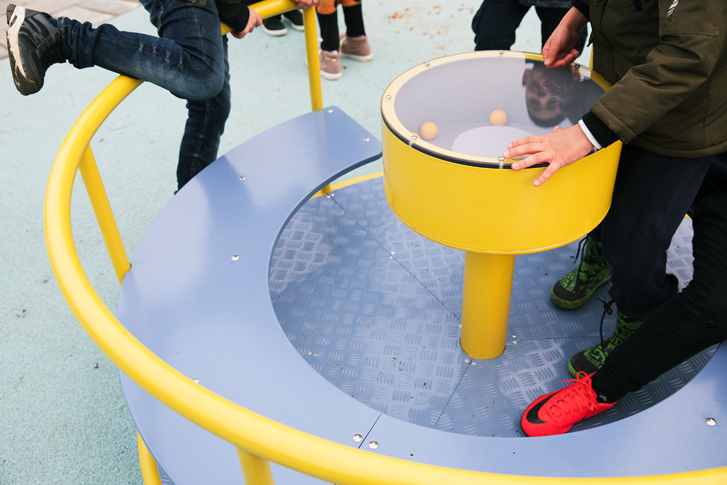 Intill Lindängens torg i Malmö står två karuseller. När de används kommer – när verket är klart – en melodi att anas: Los dos gallos (Svarta tupp) av Chicho Sánchez Ferlosio, men allt som oftast kommer det bara att vara ett polyfont klingande som hörs. Först när de två karusellerna snurrar i samma takt och med samma startpunkt spelas melodin i harmoni, med de olika stroferna fördelade mellan karusellerna som i en dialog. Det blir ett spel mellan att följa rytmen och melodin, eller att försöka styra den.