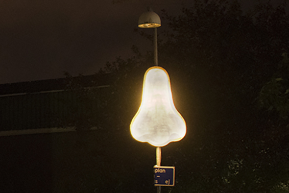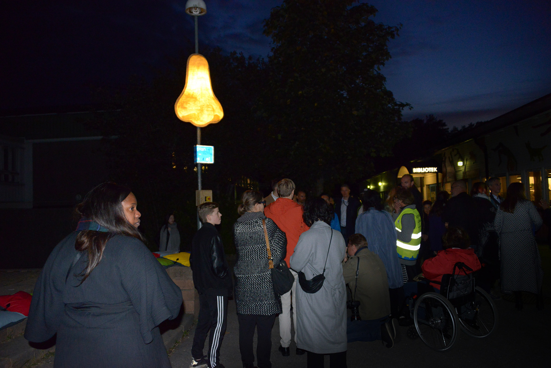 Föreningarna i Jordbro ville lyfta frågan: Hur synliggör vi vårt kulturhus? En lösning var att skapa en lysande näsa mitt framför Jordbro kultur och föreningshus, och kulturministern kom till invigningen för att trycka på knappen.