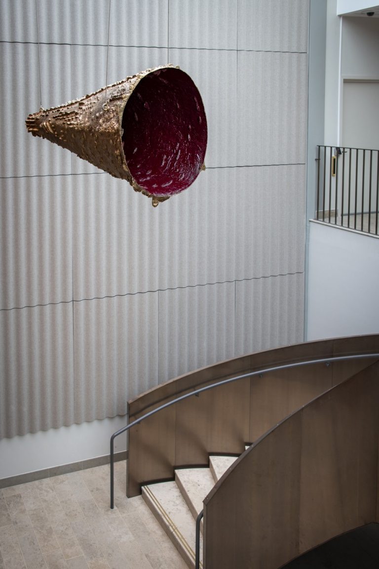 En metallådra rör sig genom byggnaden. För det mesta är den osynlig, inbäddad i väggar, tak eller golv, men på valda punkter tittar ådran fram ur arkitekturen och blir synlig. Metallådran representerar byggnadens historia som myntverk där metall tog formen av mynt av olika slag och karaktär. Den moderna samtida verksamheten i byggnaden representeras av att metallådran tar formen av ljudvågor med ett eko av röster och ord som yttras i byggnaden idag. Inspelade ljud har omvandlats till ett spektrogram som tjänar som förlaga för ådrans utformning. I ljusgården tar metallådran form av en kon som talar om rätten att bli såväl hörd som sedd.