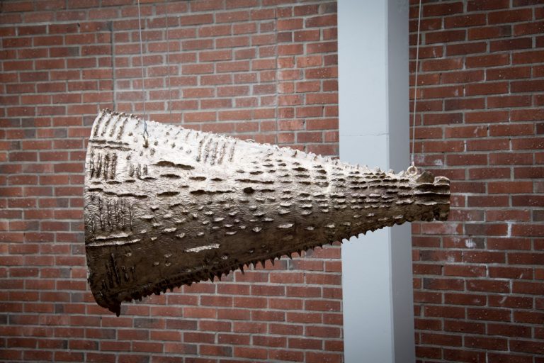 Låt höra, låt se av Sara Wallgren är en skulptural gestaltning för Eskilstuna nya tingsrätt, som konceptuellt och rumsligt binder ihop tingsrättens dagliga verksamhet och lokaler med byggnadens historia som myntverk.
