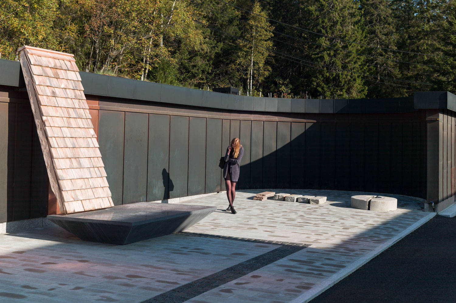 Konstnären Jenny Magnusson konstnärliga gestaltning LUTA-LÄGGA-STAPLA består av fyra komponenter som tillsammans bildar en helhet i relation till arkitekturen, platsens historia och människan. Verket finns på Voksenåsen strax utanför Oslo.