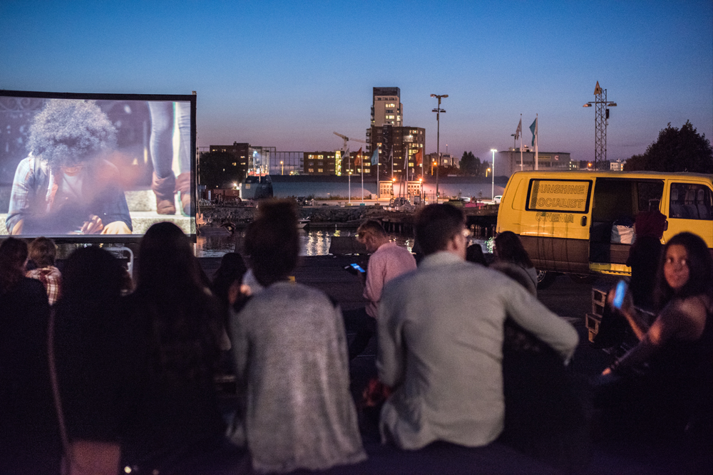 Sunshine Socialist Cinema är en solcellsdriven utomhusbiograf. Den dyker upp på offentliga platser med diskussion kring frågor om bland annat post-industriell överlevnad och politiskt filmskapande. Bakom Sunshine Socialist Cinema står de Malmöbaserade konstnärerna Kalle Brolin (1968) och Kristina Müntzing (1973).
