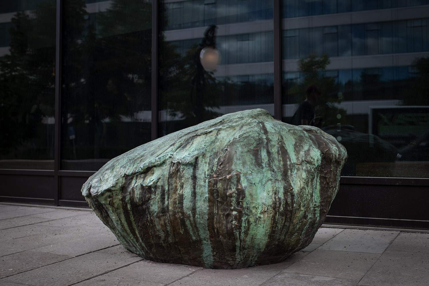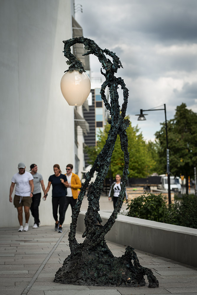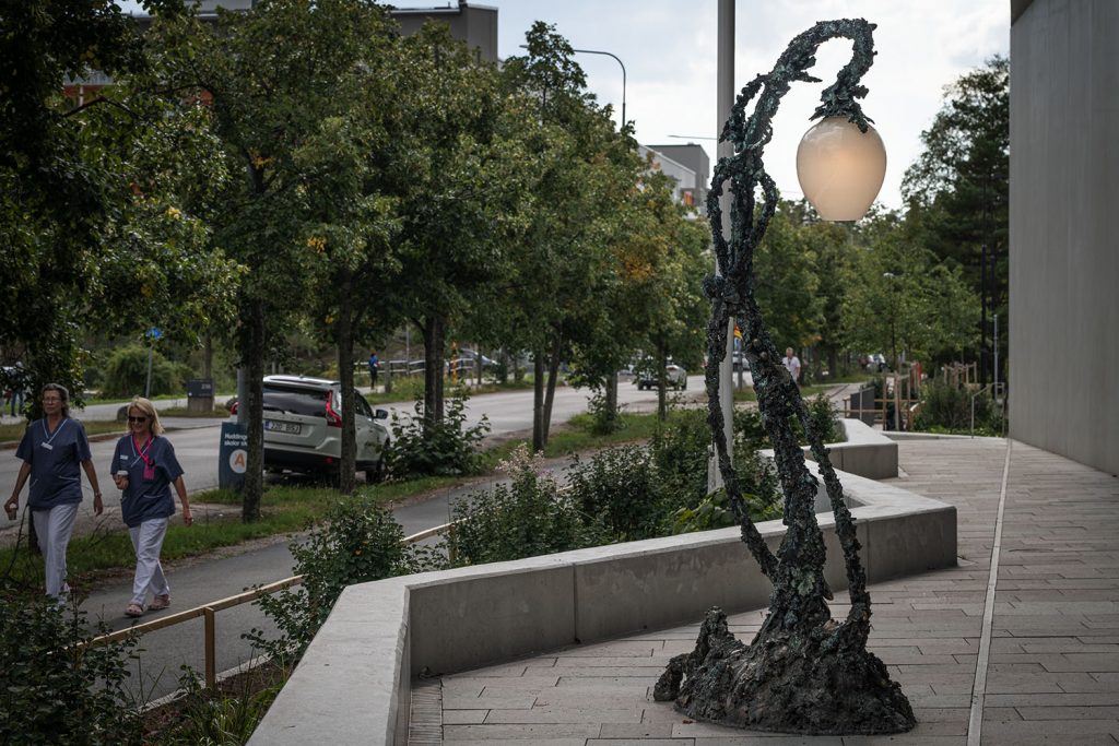 Ellen Ehk Åkesson har skapat det starkt visuella och stämningsbärande verket Sten och Lykta för Polisutbildningen på Södertörns högskola i Flemingsberg utanför Stockholm.