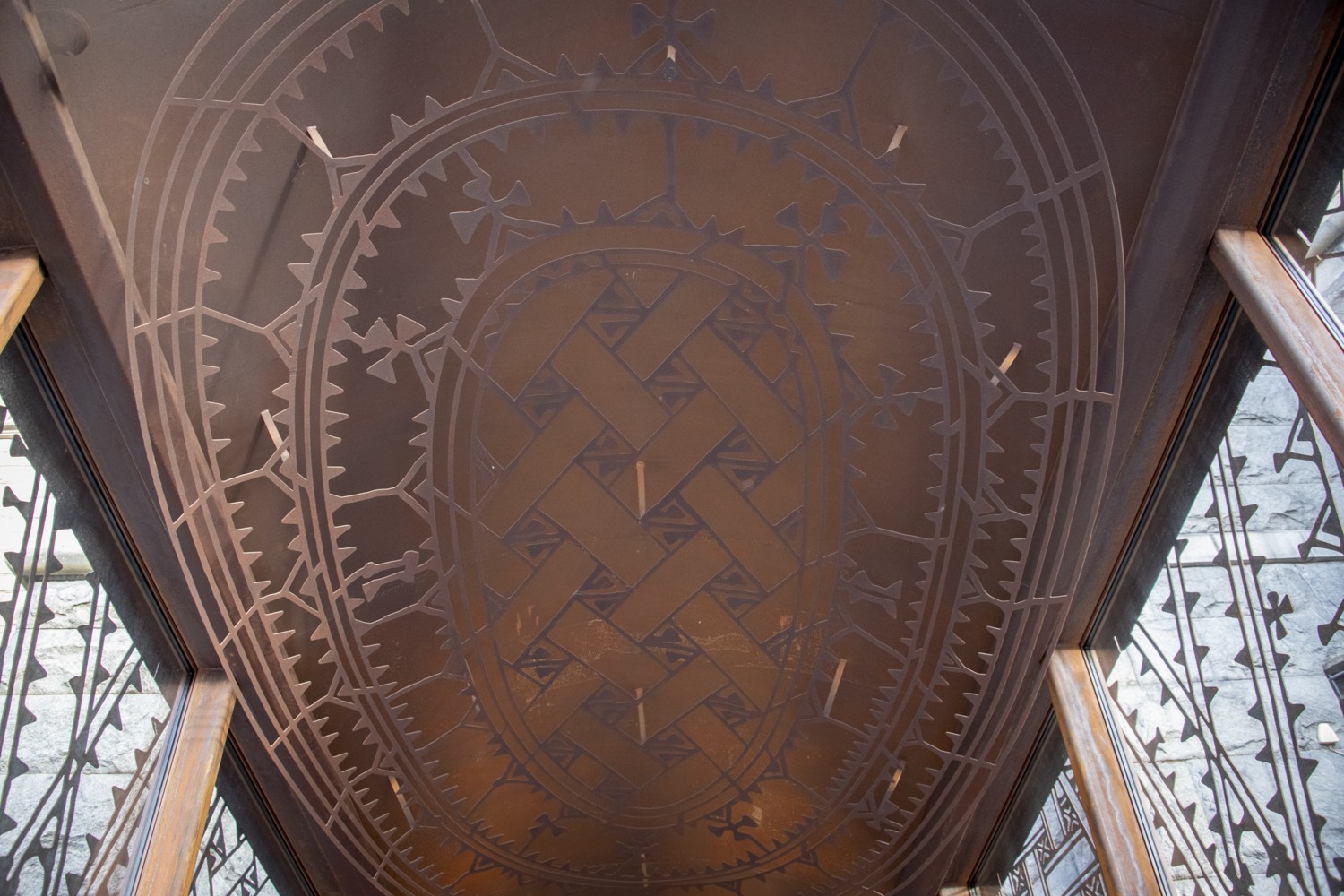 Utgångspunkten för mönsterbilden till verket har konstnären hämtat från en samisk ornamenterad sked i ben som finns i Nordiska museets stora samling av samiska föremål. I den samiska kulturen är skeden ett personligt föremål. Skedens ristningar, tecknen och mönster är bärare av ett kulturarv, olika kunskaper men också magi och mytologi.