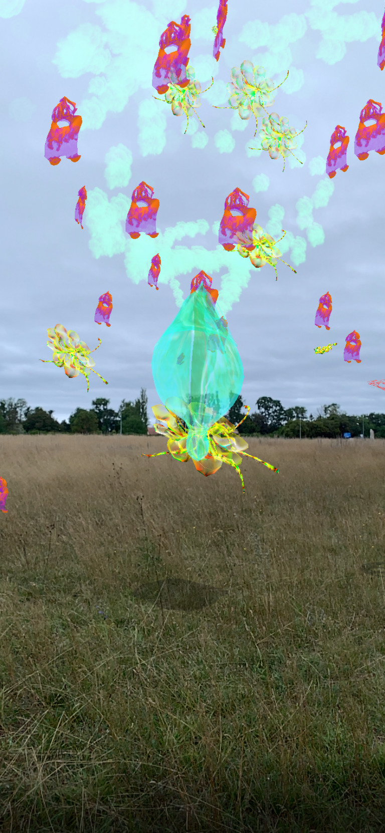 Med hjälp av tekniken Augmented Reality (förstärkt verklighet) berikas Visborgs framtida verklighet med föreställda och än så länge okända arter – eller monster, som konstnärerna föredrar att kalla dem – som har utvecklats i samarbete med elever från Atheneskolan. Den omgivande miljön är konceptuellt komponerad av fem större scener med teman som ”kol”, ”svavel”, ”metan”, ”kärn” och ”fosfor”. I AR-upplevelsen flockas monstren runt scenerna under resans gång. Användaren/utforskaren kan söka och följa monstren som gömmer sig bland tänkta dammar och lockas att upptäcka korta berättelser och engagera sig i upplevelser som utvecklas via ljud och meddelanden från monstren.