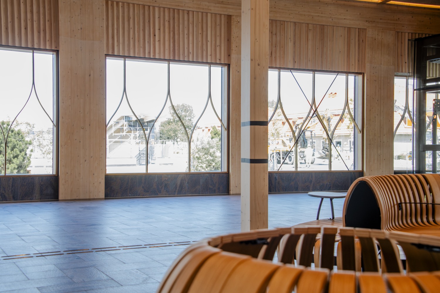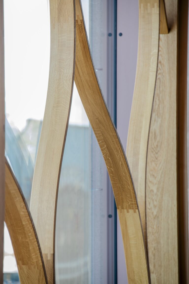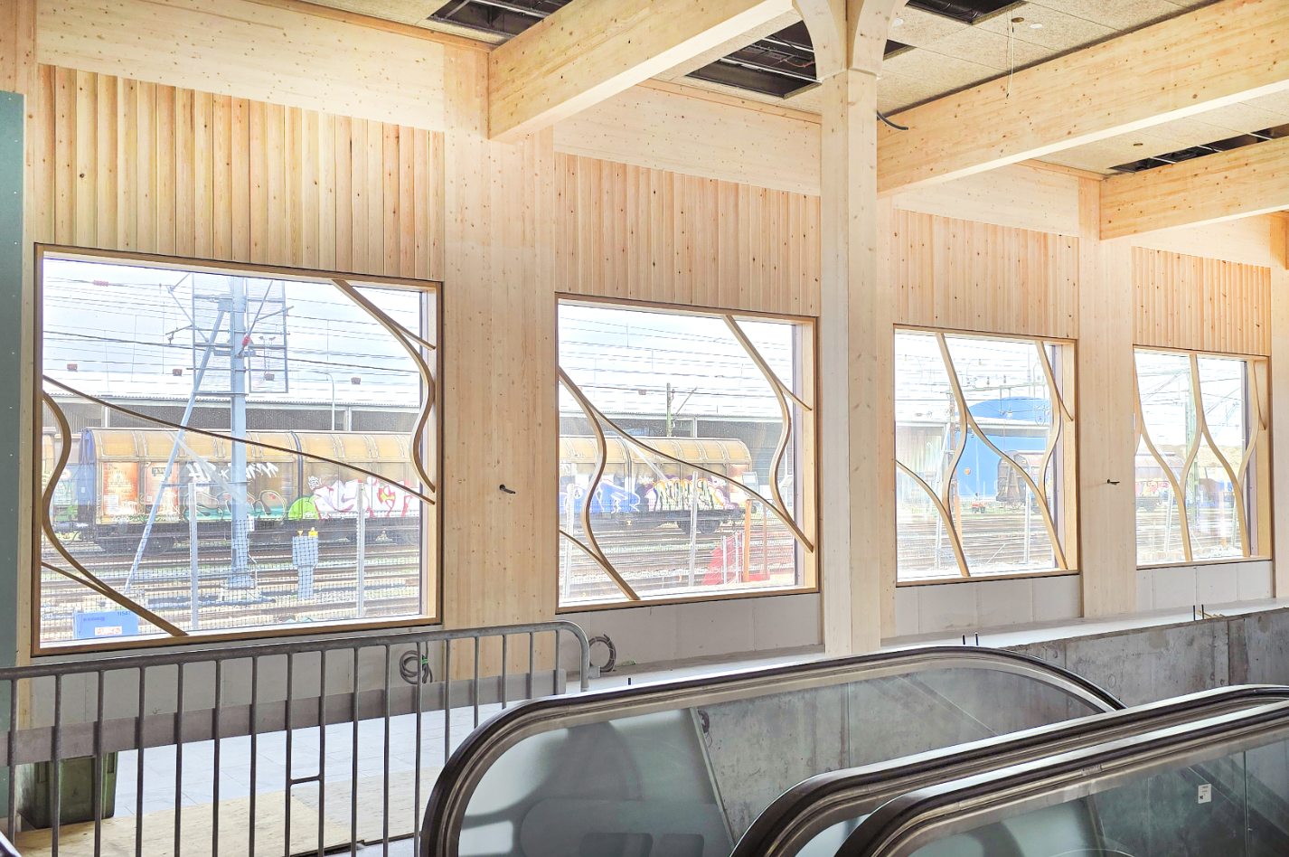 Kallbadhusets fönster och formspråket i Varbergs stationshus har inspirerat Juri Markkulas arbete med konstverket Windy. De fyra träkassetterna ändrar successivt form från timglasformer till ett mer kalligrafiskt och skulpturalt uttryck. Det ger en upplevelse av att vinden blåser genom fönsterbågarna och tar tag i dem. Med sina former från gotiska bågar knyter verket an till kallbadhusets formspråk, men Windy skapar med sina vågrörelser och sitt föränderliga utseende även ett samspel med Juri Markkulas verk Amarcord på västra trågväggen.