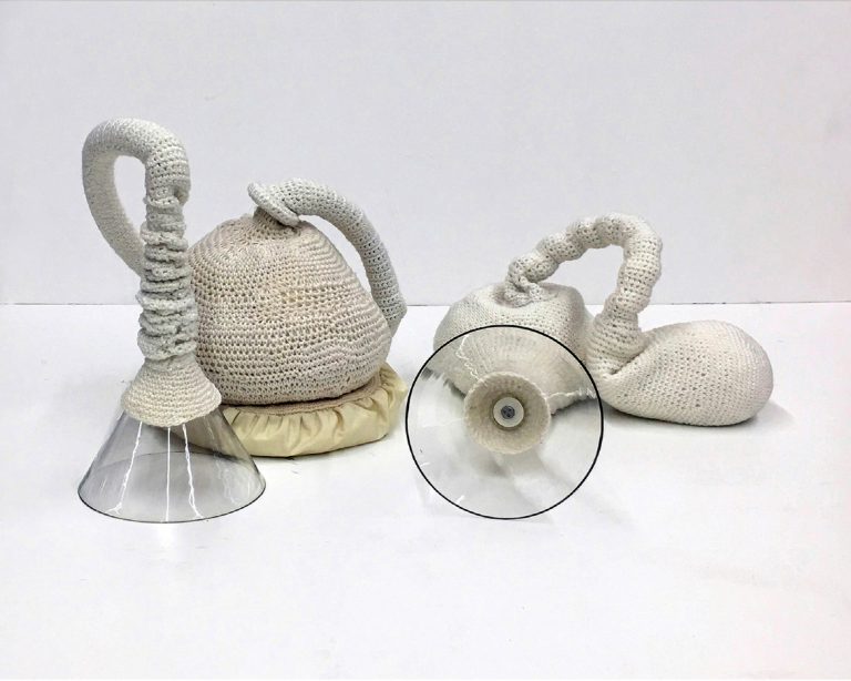 Vilka berättelser bär skåpet på? Vad finns i förpackningarna och vad fyller de för funktion? Vad står det egentligen på de vackra glasförpackningarna och vad i skåpet är det egentligen vi behöver för att orka fortsätta? Är det medicinerna? Något annat? Verket är gjort av akrylglas, aluminium, konstharts, glas och papper och är ett av tre i samma serie.