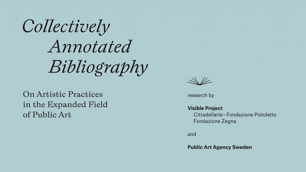 På uppdrag av Statens konstråd har Visible Project (Cittadellarte-Fondazione Pistoletto / Fondazione Zegna) (curaterat av Judith Wielander och Matteo Lucchetti) producerat och redigerat en kommenterad bibliografi, det vill säga en utökad version av en vanlig bibliografi med kortfattade kommentarer om de olika posterna. Avsikten var att nå bortom traditionella västerländska akademiska publikationer och in i områden och uttryck som är relevanta för den offentliga konsten i ett globalt perspektiv. Resultatet av detta uppdrag är Collectively Annotated Bibliography. On Artistic Practices in the Expanded Field of Public Art som finns här för nedladdning, en digital läsguide som finns på Visible Projects webbplats och ett fysiskt bibliotek på Statens konstråds lokaler i Stockholm med böckerna som ingår i läsguiden.