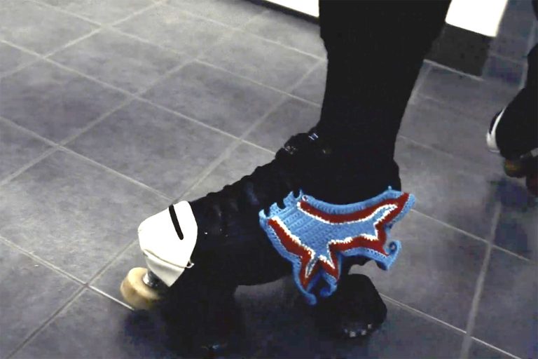 Rebecka ”Barsebäx” Lindberg: Den utrustning vi brukar ha är knäskydd, armbågsskydd, handledsskydd, hjälm och tandskydd. Ibland ska man ha någon form av textil på knäskyddet för att det inte ska bli märken på känsliga golv. Så ett stickat knäskydd kan vi absolut använda!