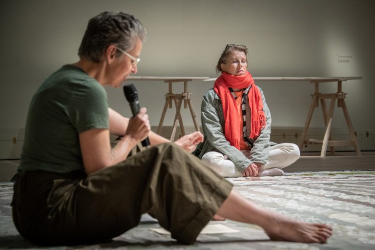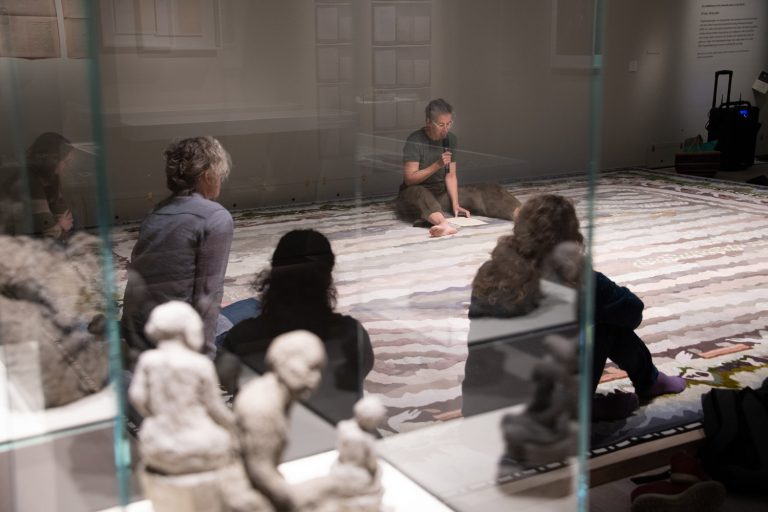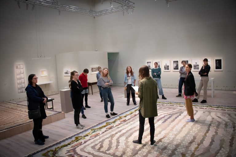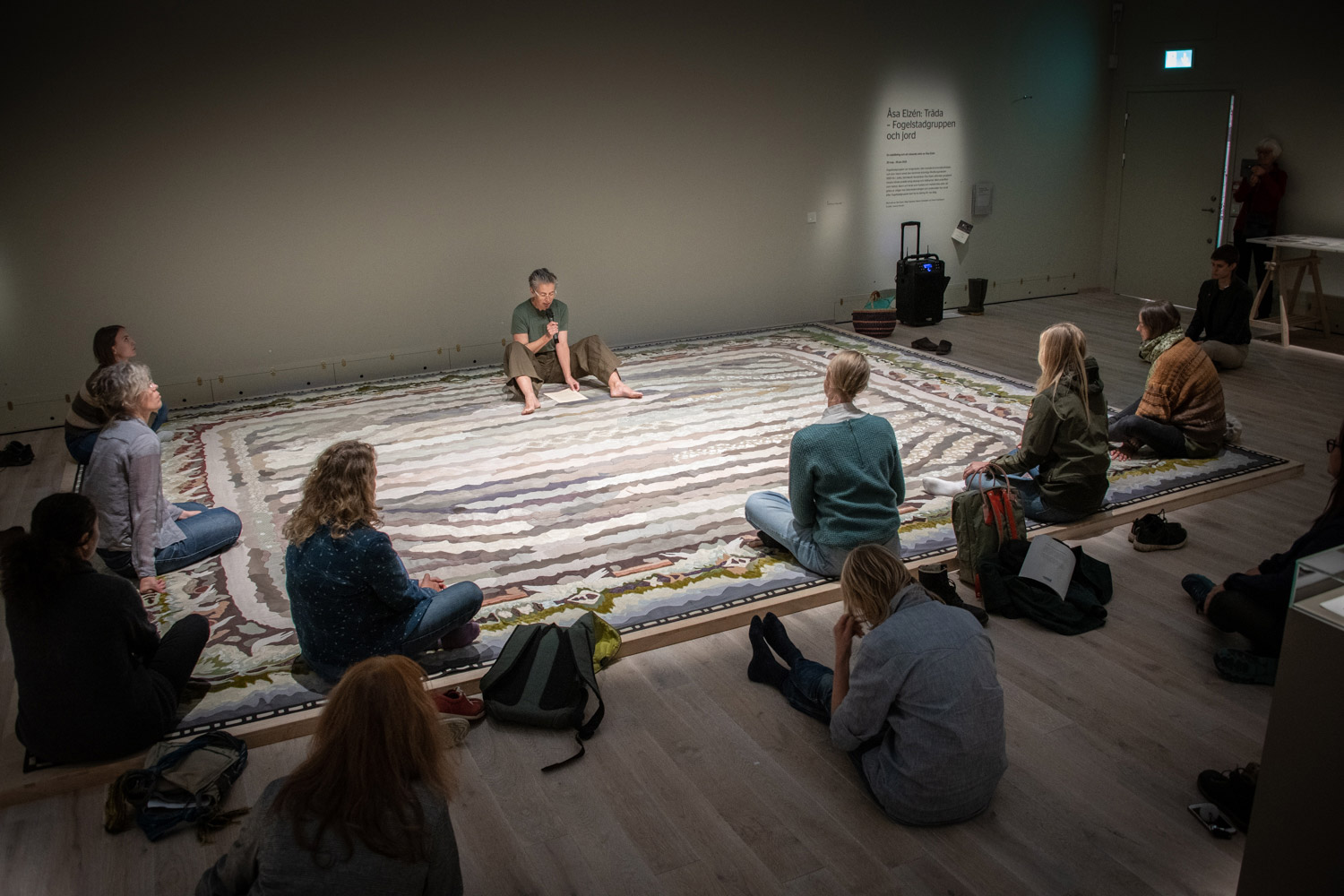 I programmet ingick ett besök på utställningen Träda – Fogelstadgruppen och jord av Åsa Elzén, curaterad av Joanna Nordin, på Sörmlands museum.