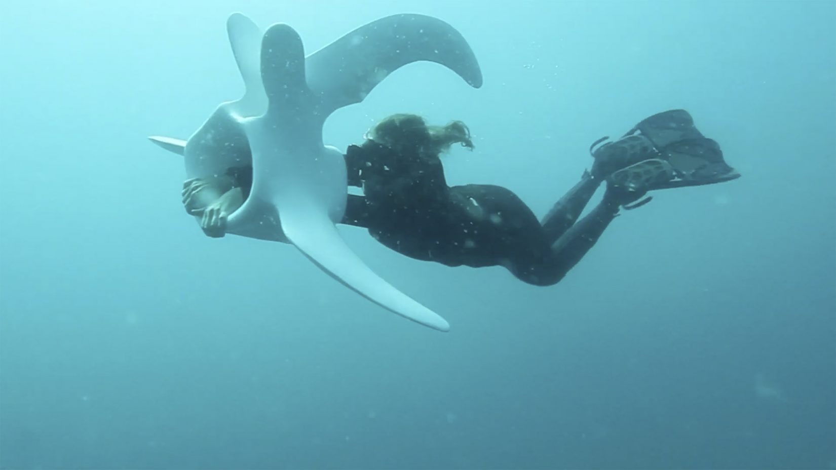 I konstverket Hic Sunt Dracones dyker myten om monstret upp i en flerbottnad video som lyfter frågeställningar kring människans konstanta behov att bemästra naturen och utvinna dess kraft. I filmen får vi följa med på ett fartyg och en resa genom valjaktens historia. Genom arkivmaterial från 1940-talets blodiga valfångst ser vi bland annat männens riter inför dödandet av havets mäktigaste djur som komponeras samman med en återkommande sekvens av en kvinna som frisimmar med en stor valkota genom ett dunkelt blågrönt hav och skapar en kontrasterande poetisk stämning.