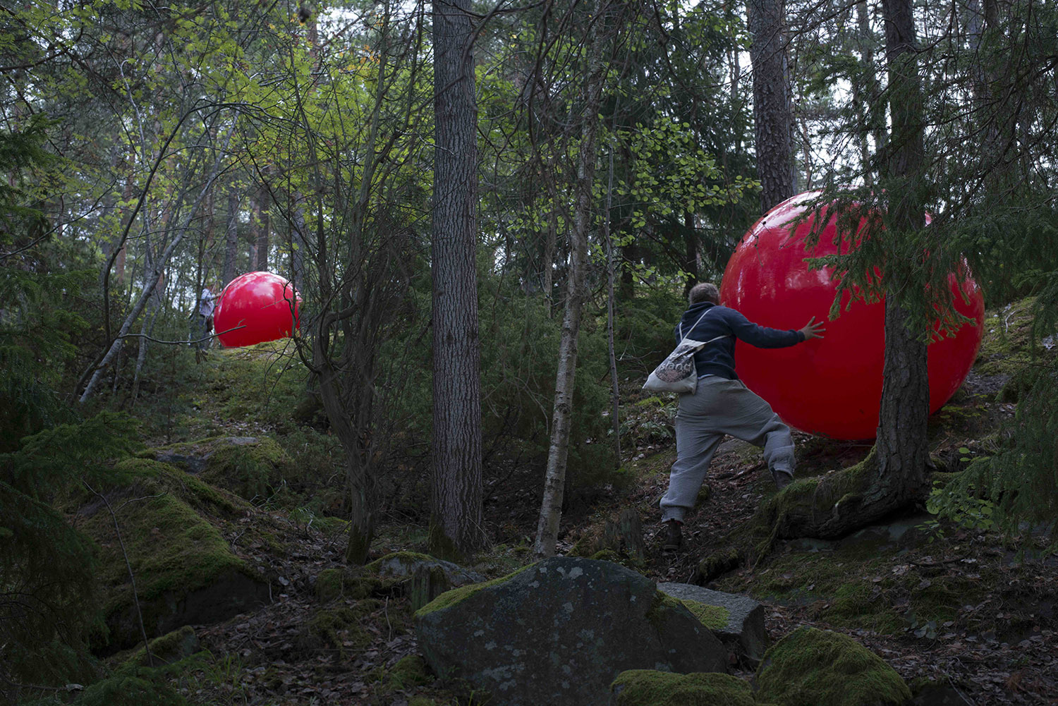 – Det är en Råby Planet-festival. En stor fest som kretsar kring en fem meter hög boll som ska rulla genom Råbyskogen. Genom att arrangera workshops öppna för allmänheten byter vi idéer med varandra och tillsammans hjälps vi åt att tillverka de fysiska objekt som vi behöver. Samarbetet öppnar upp för deltagande, med allt från danskoreografier och performanceverk till debatter om dagsaktuella frågor – allt kommer att gå samman i Råby Planet.