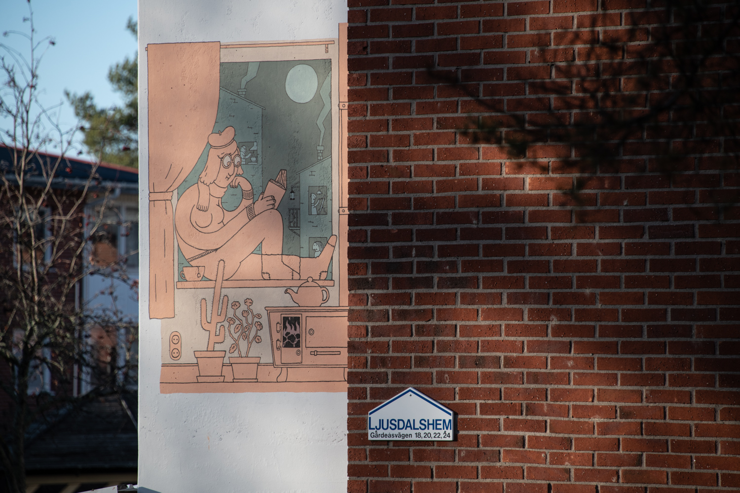 – Jag har varit på plats i Gärdeåsen några gånger, gjort intervjuer och blivit bekant med kvinnoföreningen och människor i bostadsområdet. Sedan har jag suttit hemma och jobbat med berättelserna, gjort skisser och återvänt till Ljusdal igen för att se att kvinnoföreningen tycker att jag är på rätt spår. Det har funkat väldigt fint att jobba tillsammans. Trots att kvinnorna haft mycket att säga till om har de låtit mig vara fri att uttrycka saker på mitt sätt, göra min egen konstnärliga tolkning.